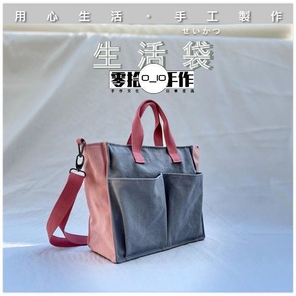 【手製】生活袋 ( 粉紅 +灰 )